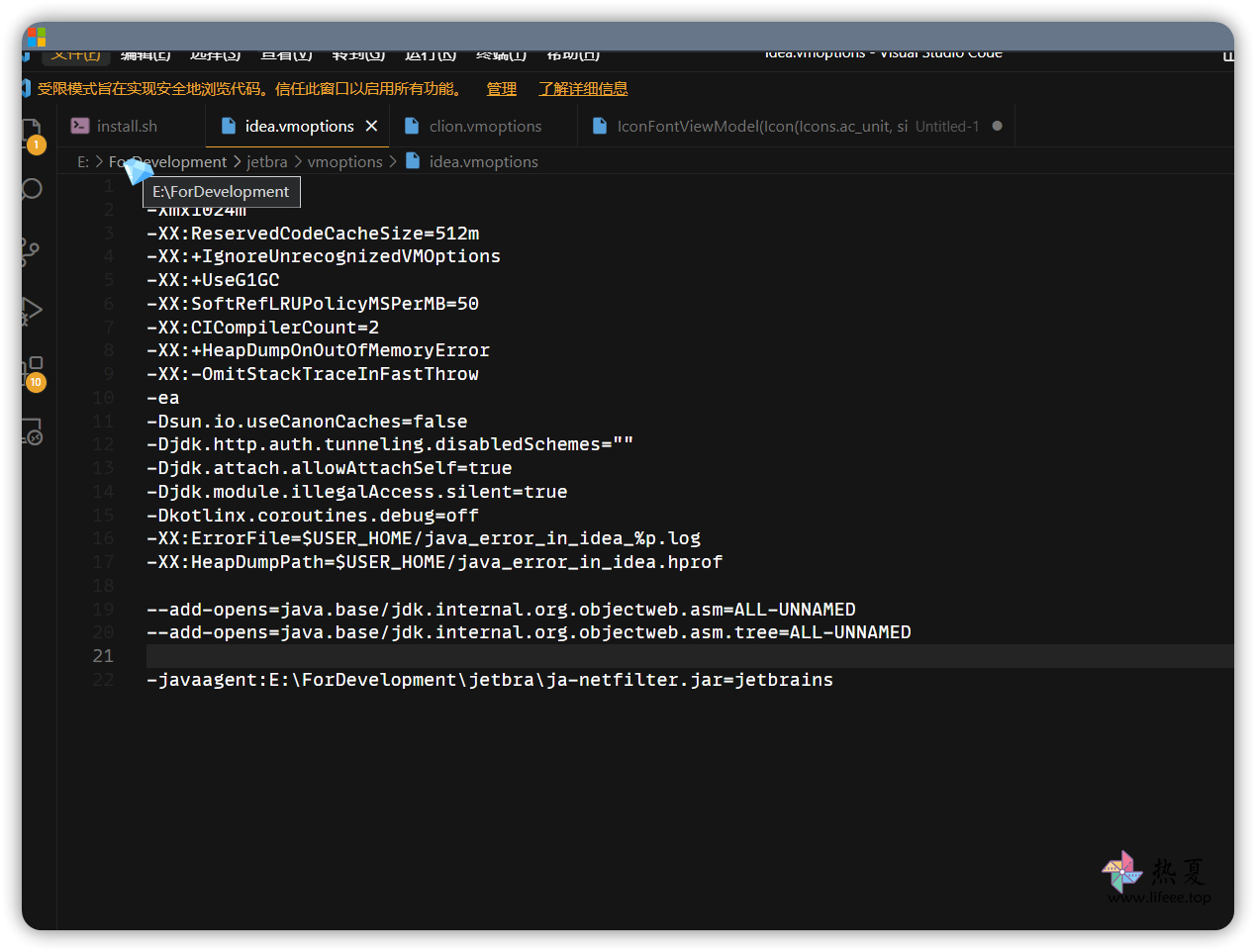 可以打开 vmoptions 看一看。