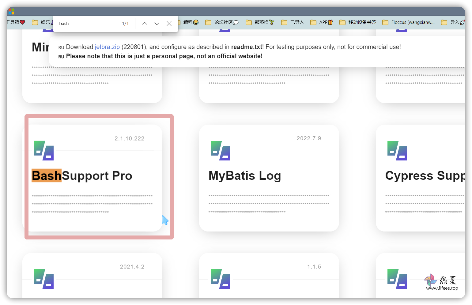 同理,去 JETBRA.IN CHECKER | IPFS 您下载压缩包的网址,找到您需要激活的插件,鼠标点击一下就会复制到激活码到剪切板,然后粘贴再 activate 激活即可。比如 BashSupport Pro。 插件有很多,可以CTRL+F 搜关键字找到。