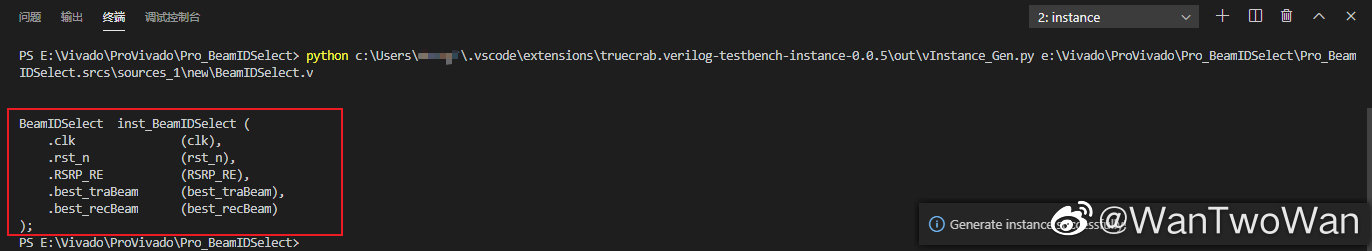 print("\n") print("%s %s inst_%s (\n%s\n);" % (name, paraDef, name, portList))